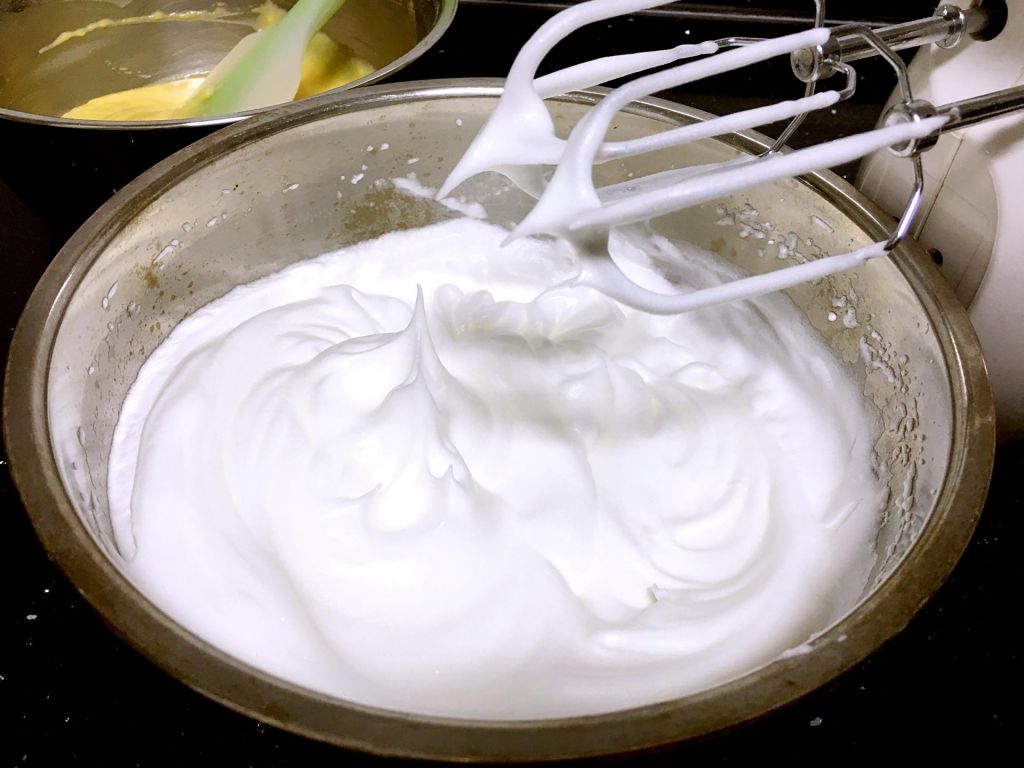 首先,依靠打發(fā)蛋白或者全蛋來(lái)膨脹的蛋糕不需要再添加膨化劑,因?yàn)楸旧須馀菀呀?jīng)很豐富,這就已造就了蛋糕的輕盈與彈性。不過(guò),打發(fā)蛋白比打發(fā)黃油顯得更不穩(wěn)定,制作難度也稍大。