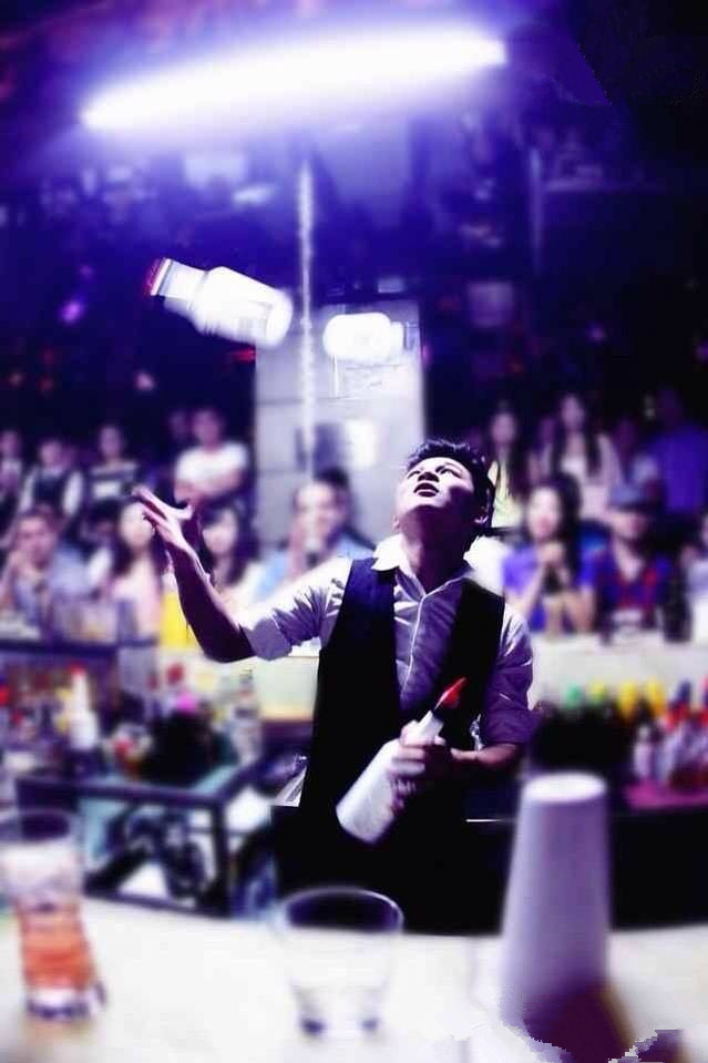 調(diào)酒師最能挑起人們“會須一飲三百杯”的還是眼下時興的花式調(diào)酒。花式調(diào)酒更像雜耍表演,酒瓶在不差分毫的拿捏中飛舞,各種色彩的酒類在調(diào)酒師的指間流光溢彩。