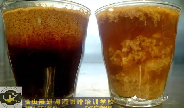 兩杯產生牛奶凝結現象的咖啡。左圖為滴濾咖啡,右圖為意大利濃縮咖啡