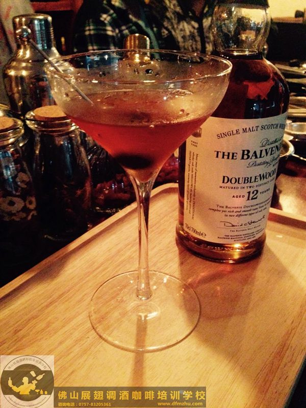 原料:蘇格蘭威士忌60ml、馬天尼紅威末酒(甜味美思)15ml、安哥斯特拉苦精1滴、紅櫻桃1顆、冰塊適量