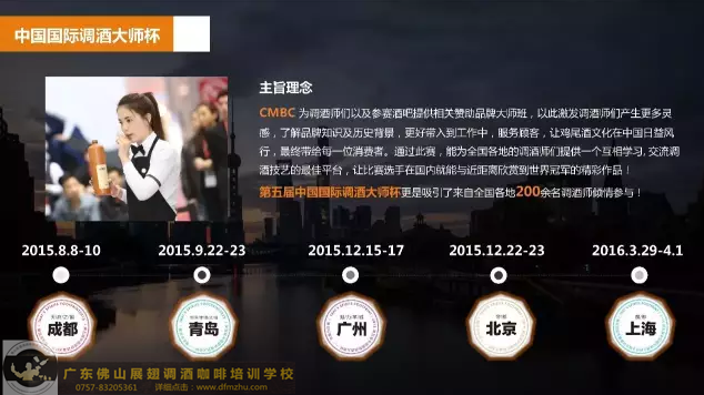 中國國際調酒大師杯(China Master Bartender Competition,簡稱CMBC)已經成功走過五個年頭,這里面離不開支持、幫助、參與大師杯賽的每一個人、每一個團體。今天,我們將以【圖片】的形式,帶你一起【回顧】過去的點點滴滴,【展望】新一屆的大師杯……