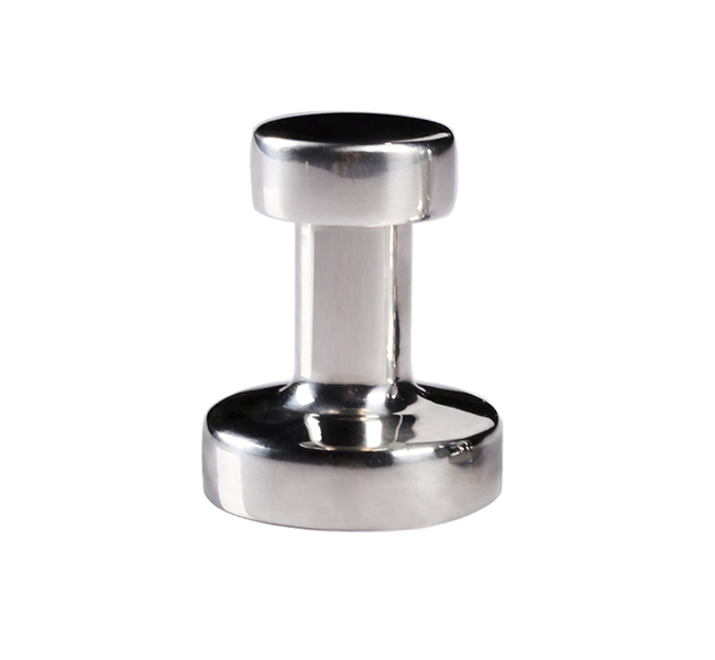 填壓器的兩頭造型略有不同,平整的一面負責將咖啡粉填壓平整,而凸出的一面則用來輕敲咖啡把手兩端,讓咖啡把手邊緣內一些沒有壓緊的咖啡粉落下,然后再次施壓下壓,讓咖啡粉的均勻。